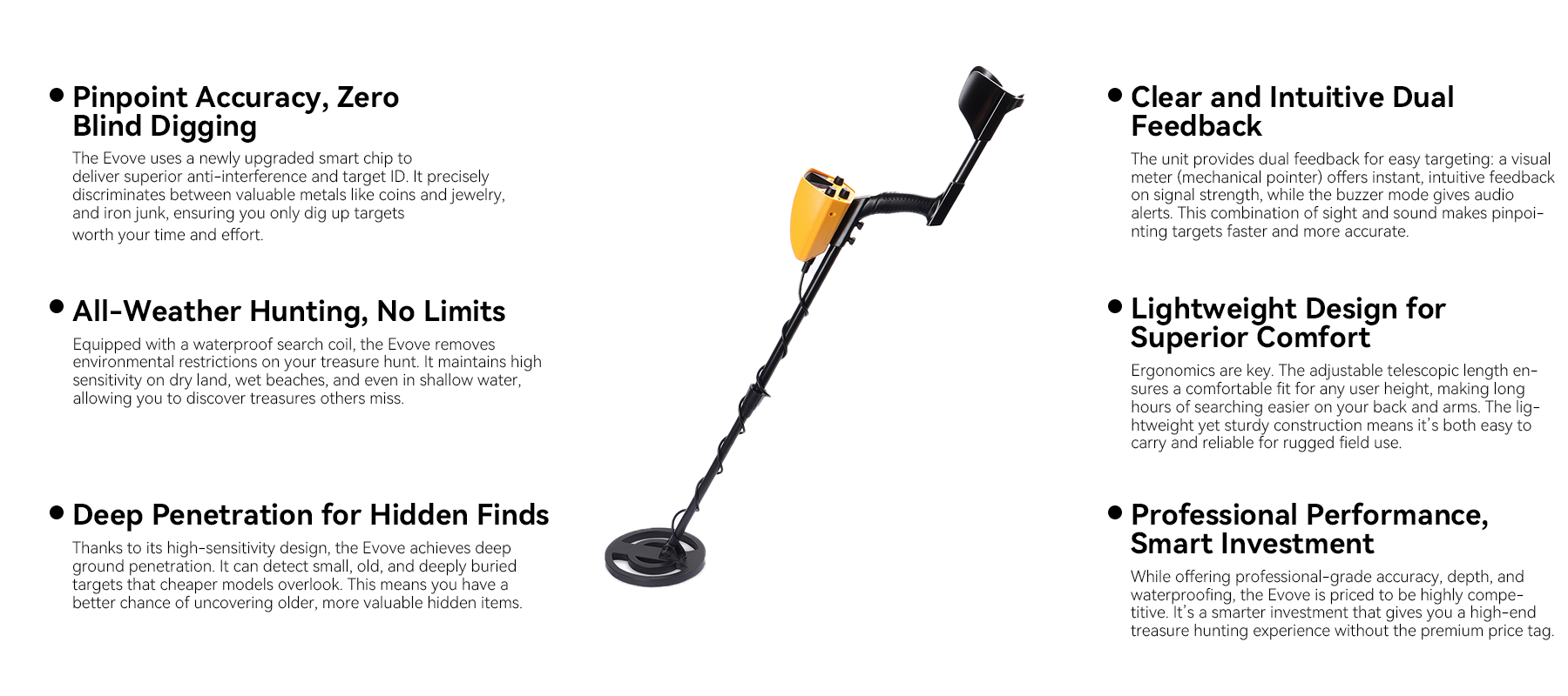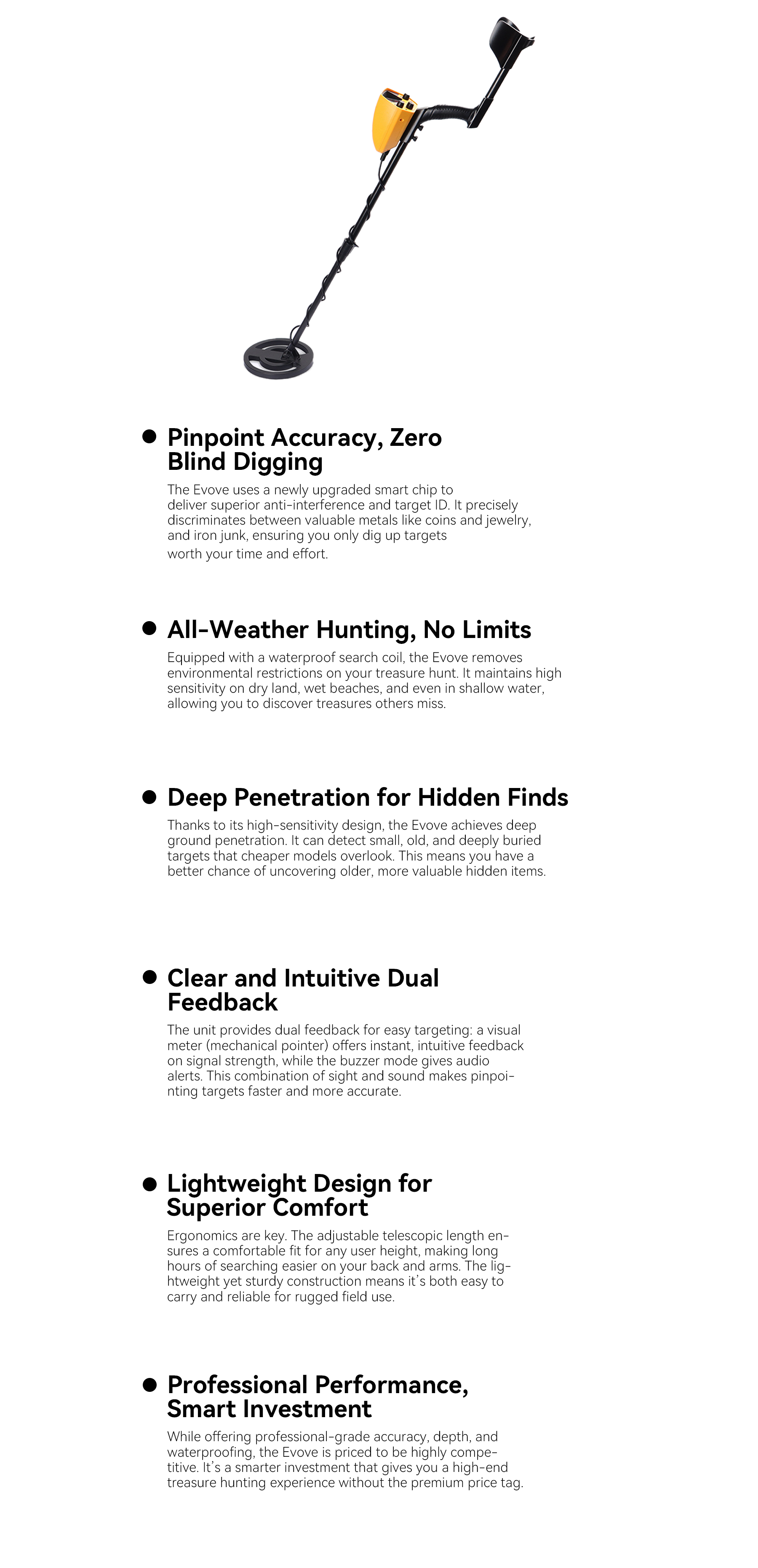 That belief led to Evove. The brand promises to use reliable tech, like smart chips and fully waterproof design, to make metal detecting precise, deep, and unrestricted. Its mission is to bring the genuine joy of discovery to all enthusiasts.